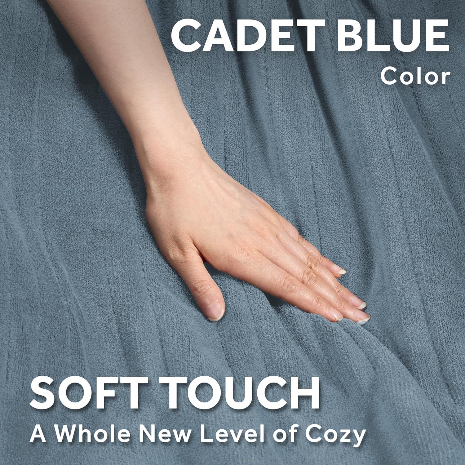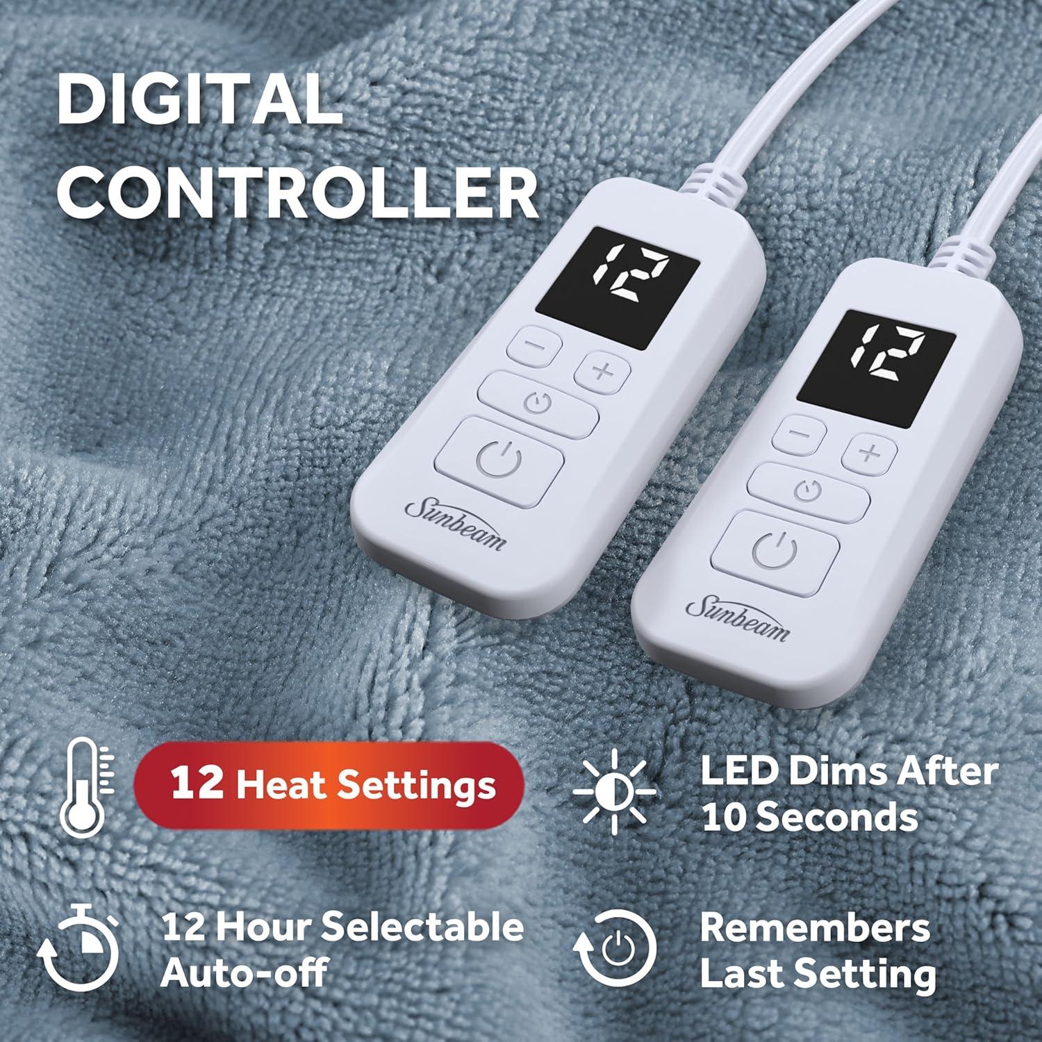 Sunbeam Electric Royal Luxe Microplush Heated Blanket, 12 Heat Settings, 12-Hour Auto Shut-Off, Fast Heating, Warm & Cozy, Machine Washable, Mushroom Color, Full (84" x 72")(Cadet Blue)