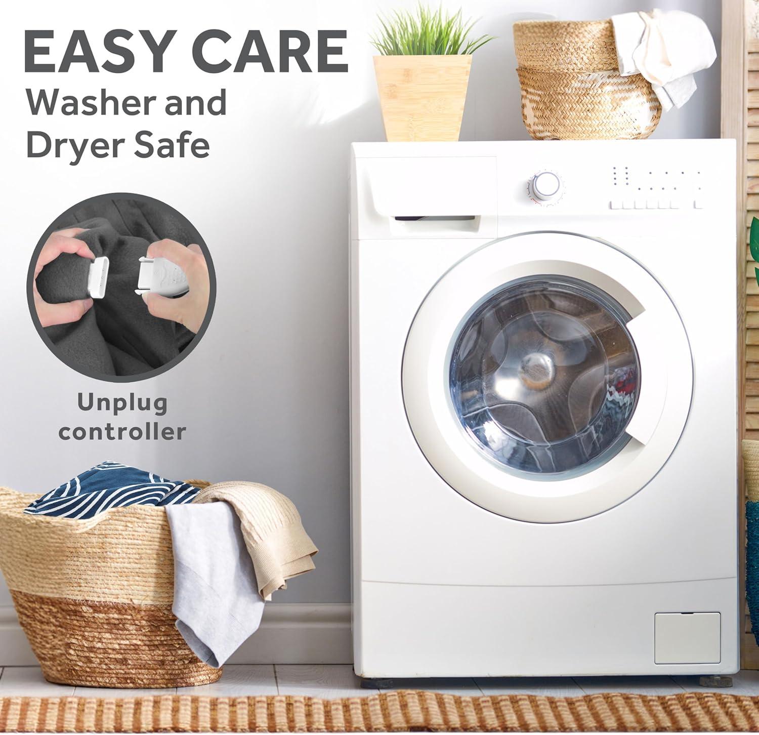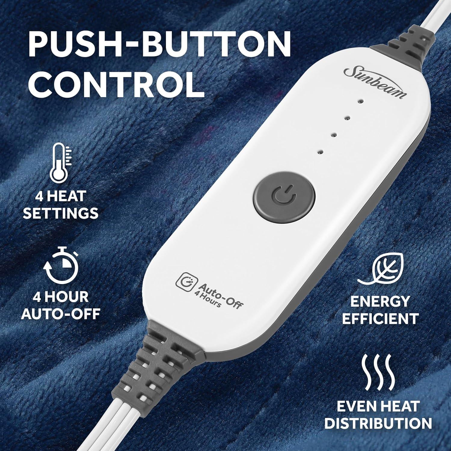 Sunbeam Royal Posh Velvet Heated Blanket snuggles you in cozy warmth on chilly nights. Experience the lush and silky royal posh velvet fabric to keep you warm and comfortable all night long. The Night Fog color enhances any bedroom decor, making this Full size (84” x 72″ ) electric blanket make a stylish and practical addition to your home. Features a user-friendly dial controller that offers 12 personalized heat settings, allowing you to find the perfect temperature for your warmth and comfort. Plus, a 1 to 12-hour selectable auto shut-off function for added peace of mind. The heated wires are made with premium components developed with a wire technology that senses and adjusts for continuous heat and safe operation. When ready to clean, simply detach the controller from the blanket and place into the washing machine and dryer for easy care, stays silky soft wash after wash. Sunbeam is an American brand with more than 125 years of history in electric home appliances. All Sunbeam electric bedding products are ETL certified.