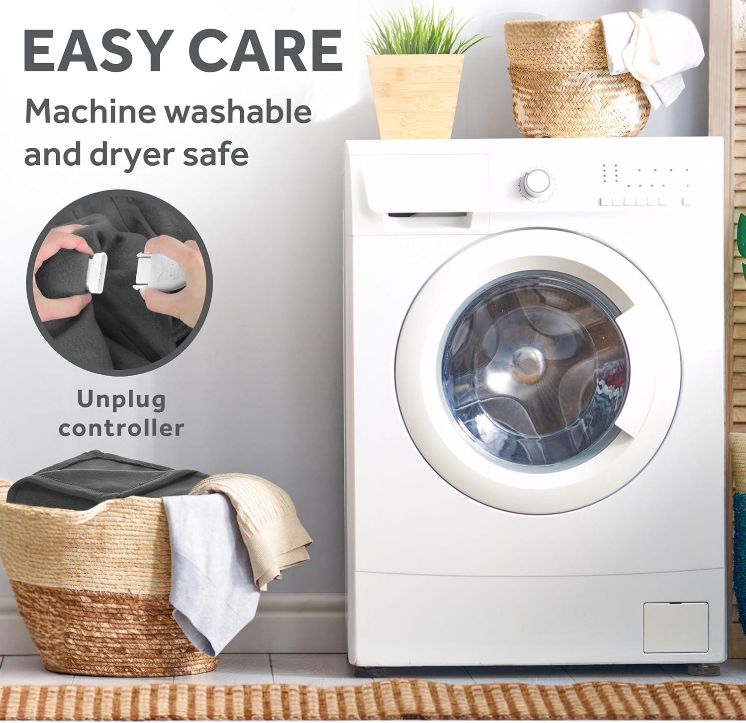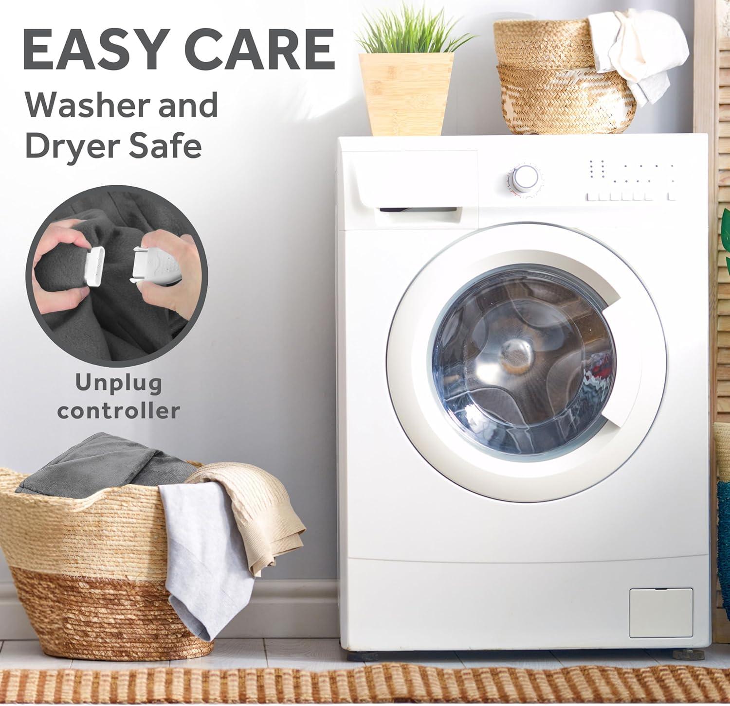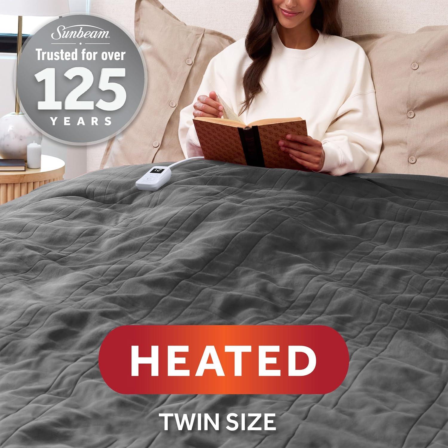 Sunbeam Royal Posh Velvet Heated Blanket snuggles you in cozy warmth on chilly nights. Experience the lush and silky royal posh velvet fabric to keep you warm and comfortable all night long. The Night Fog color enhances any bedroom decor, making this Full size (84” x 72″ ) electric blanket make a stylish and practical addition to your home. Features a user-friendly dial controller that offers 12 personalized heat settings, allowing you to find the perfect temperature for your warmth and comfort. Plus, a 1 to 12-hour selectable auto shut-off function for added peace of mind. The heated wires are made with premium components developed with a wire technology that senses and adjusts for continuous heat and safe operation. When ready to clean, simply detach the controller from the blanket and place into the washing machine and dryer for easy care, stays silky soft wash after wash. Sunbeam is an American brand with more than 125 years of history in electric home appliances. All Sunbeam electric bedding products are ETL certified.