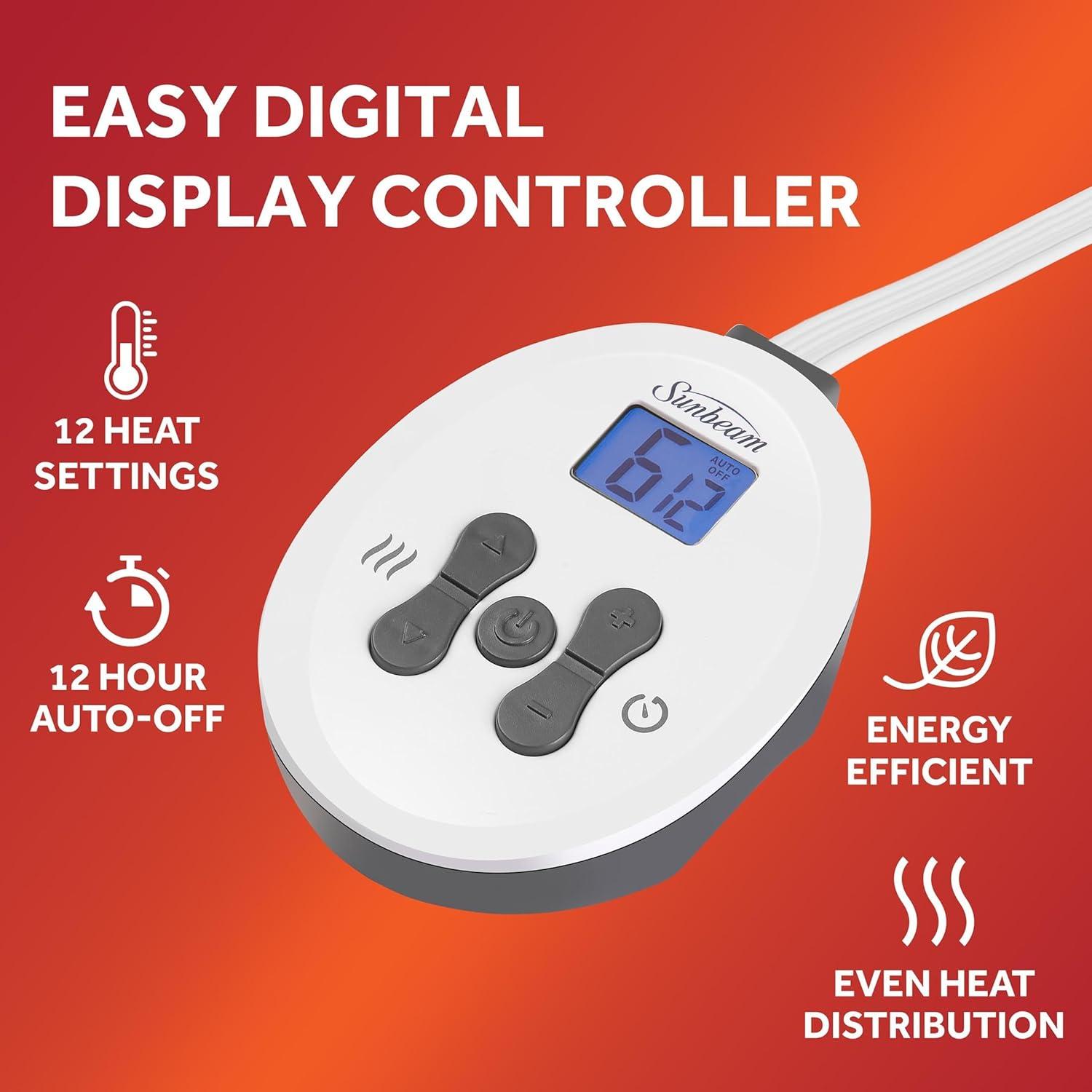 USER-FRIENDLY DESIGN: Electric blanket with digital controller and LED backlit blue display for easy viewing at night